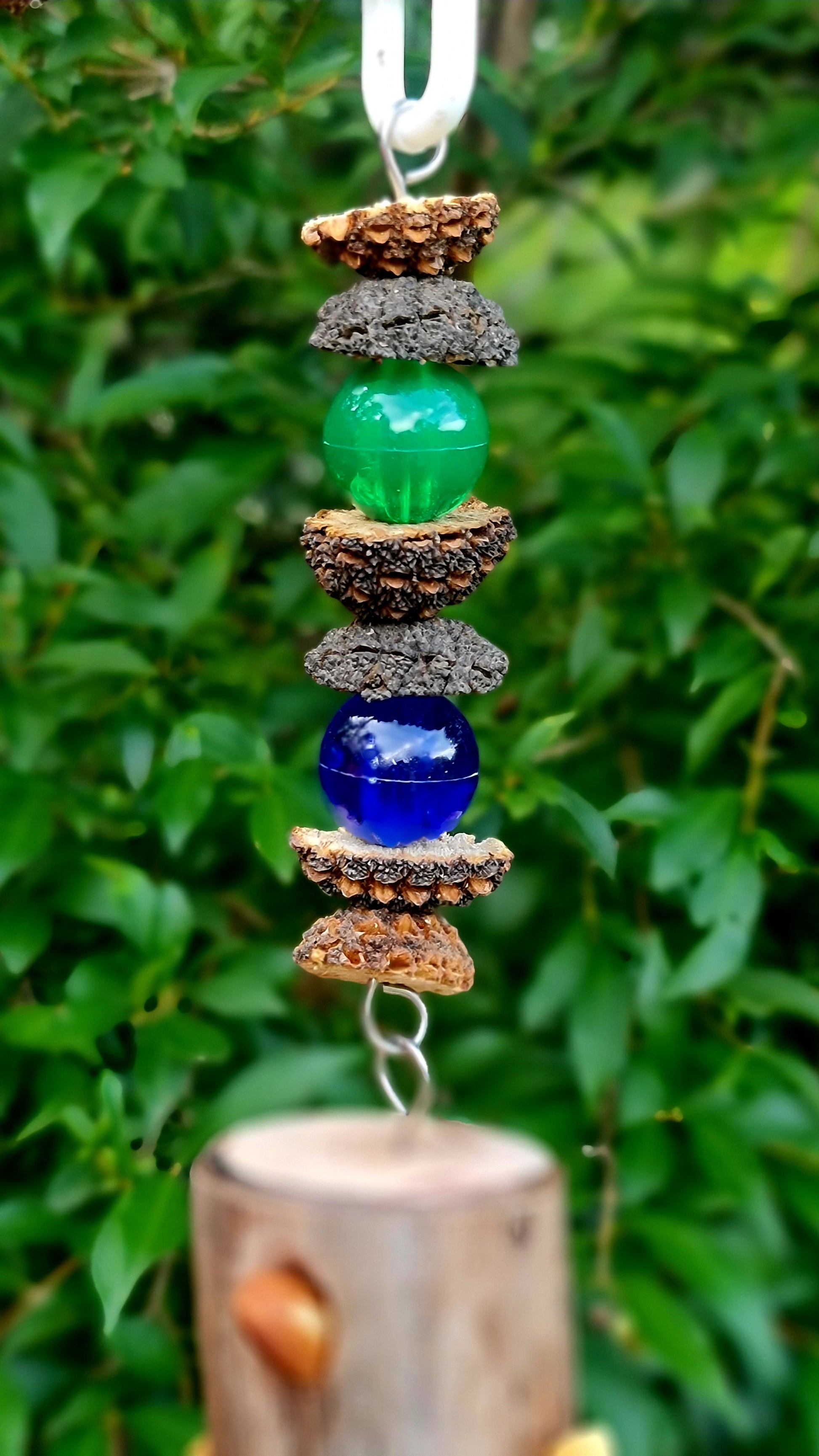 A fun forager toy for your birdie to find yummy nuts (included) in each hole while also being a shredder toy, keeping your birdie very occupied. Hand made using a wood chunk of stringybark for the forager and sliced casuarina nuts which has all been sourced from our forest, paper, acrylic beads and stainless steel wire. Human grade nuts included are almonds and cashews. Measures approximately 35cm from hanger clip to the base of the paper and forager log is approximately 7cm long x 5cm in diameter. 🦜🐦 Suits, very small, small, medium and large birdies 🤩 Please note that your timber toy may start splitting/cracking/shrinking in areas as it continues to dry out since it has been freshly harvested from our forest, however this should not affect your birdies play time and fun with this toy 😁