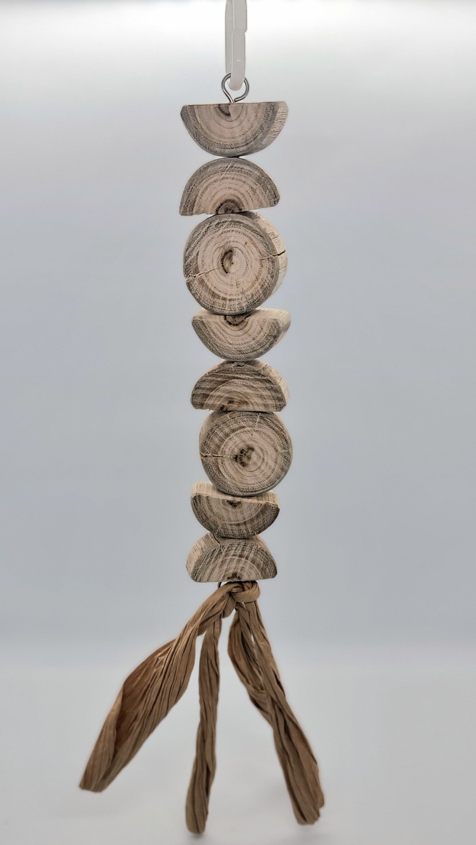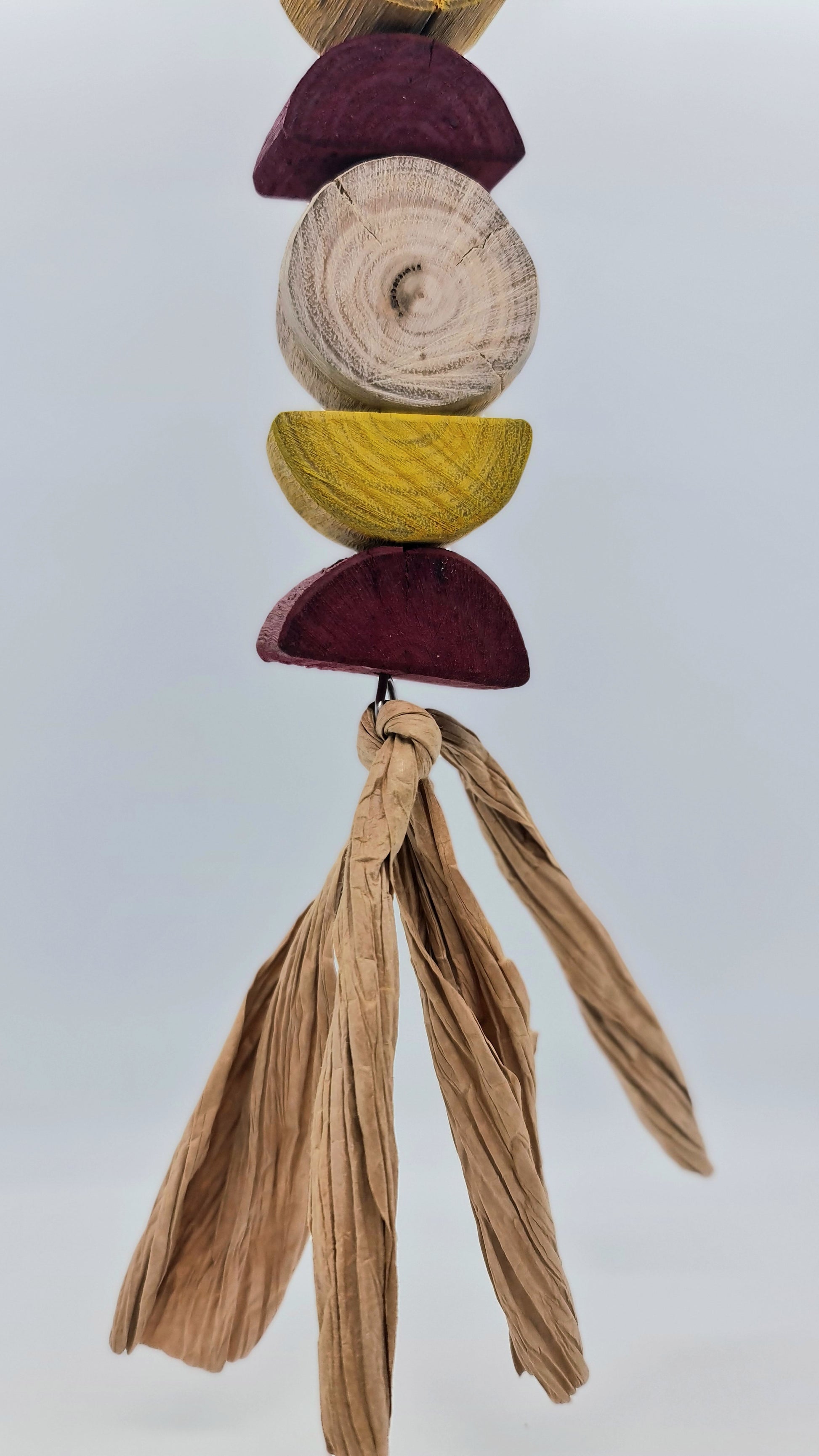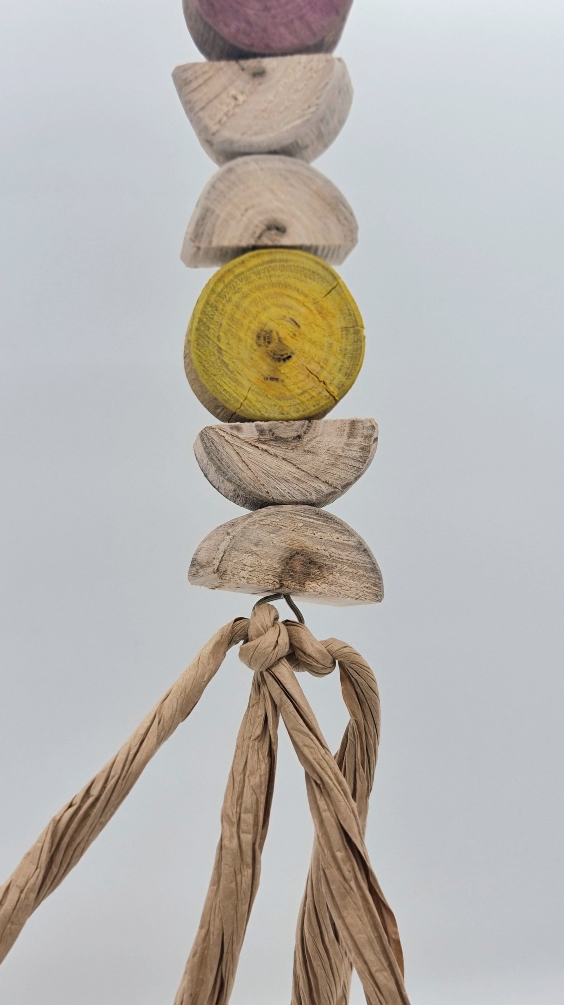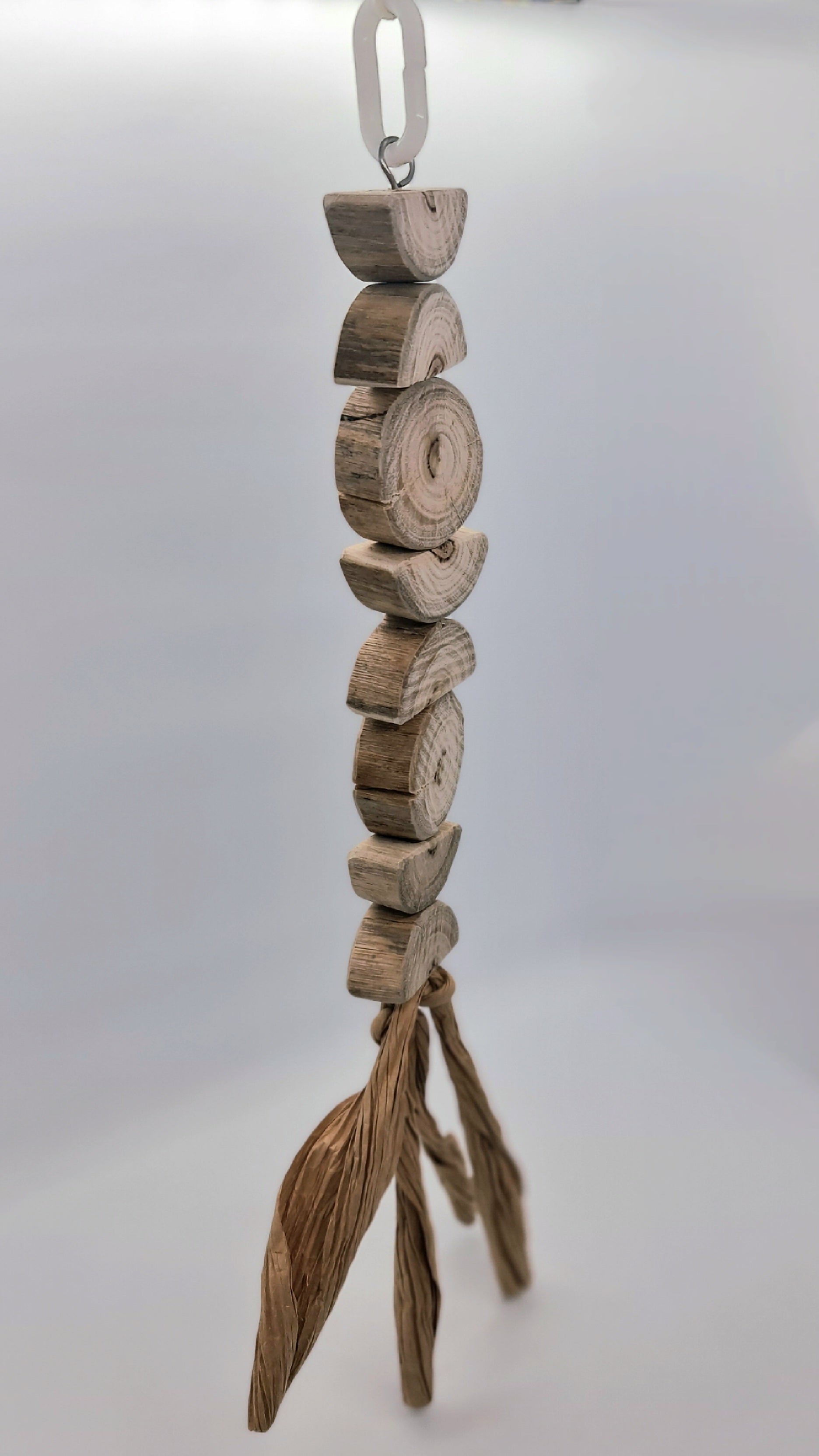 Made using stainless steel wire, wood(spotted gum), paper and a plastic hanger clip (option 2 turmeric and beetroot dyed wood)Suitable for small, medium, large and very large birds. 🦜🐦 Please note that your timber toy may start splitting/cracking/shrinking in areas as it continues to dry out since it has been freshly harvested from our forest, however this should not affect your birdies play time and fun with this toy 😁
