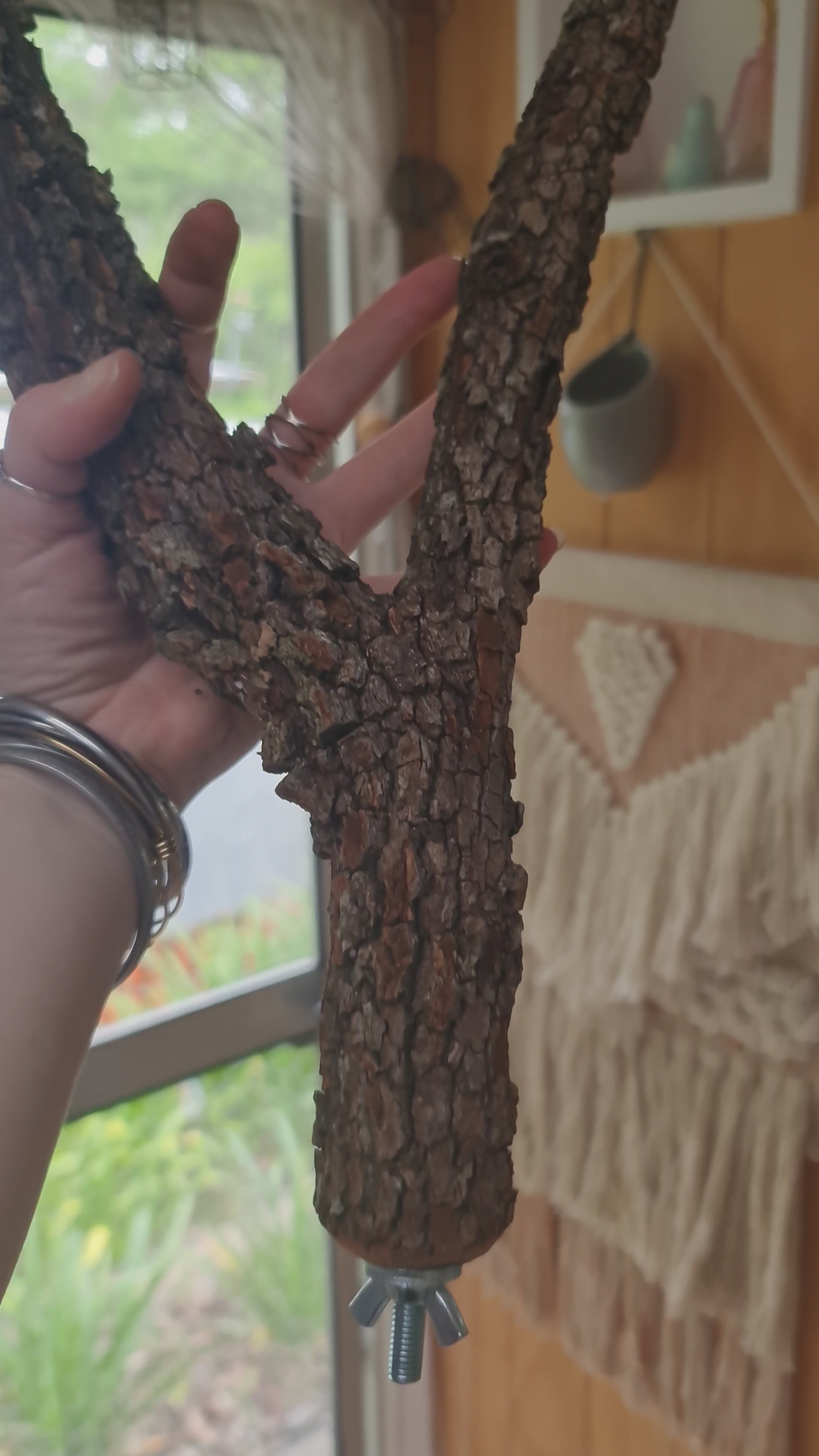 This casuarina fork perch is great to add to your birdies palace with it's all natural timber and fun fork feature, also perfect for your birdies feet and nails. Made from casuarina, 8mm zinc plate bolt, wing nut and washers. Measures approximately 45cm long x 3/3.5cm fork section diameter, 3.5cm main section diameter 🐦🦜 Suitable for very small to large birds (e.g. canaries/finches/budgies/lovebirds/cockatiels/quakers/conures/ringnecks/caiques/eclectus/galahs/corellas/alexanderine/amazons/african greys/small macaws).