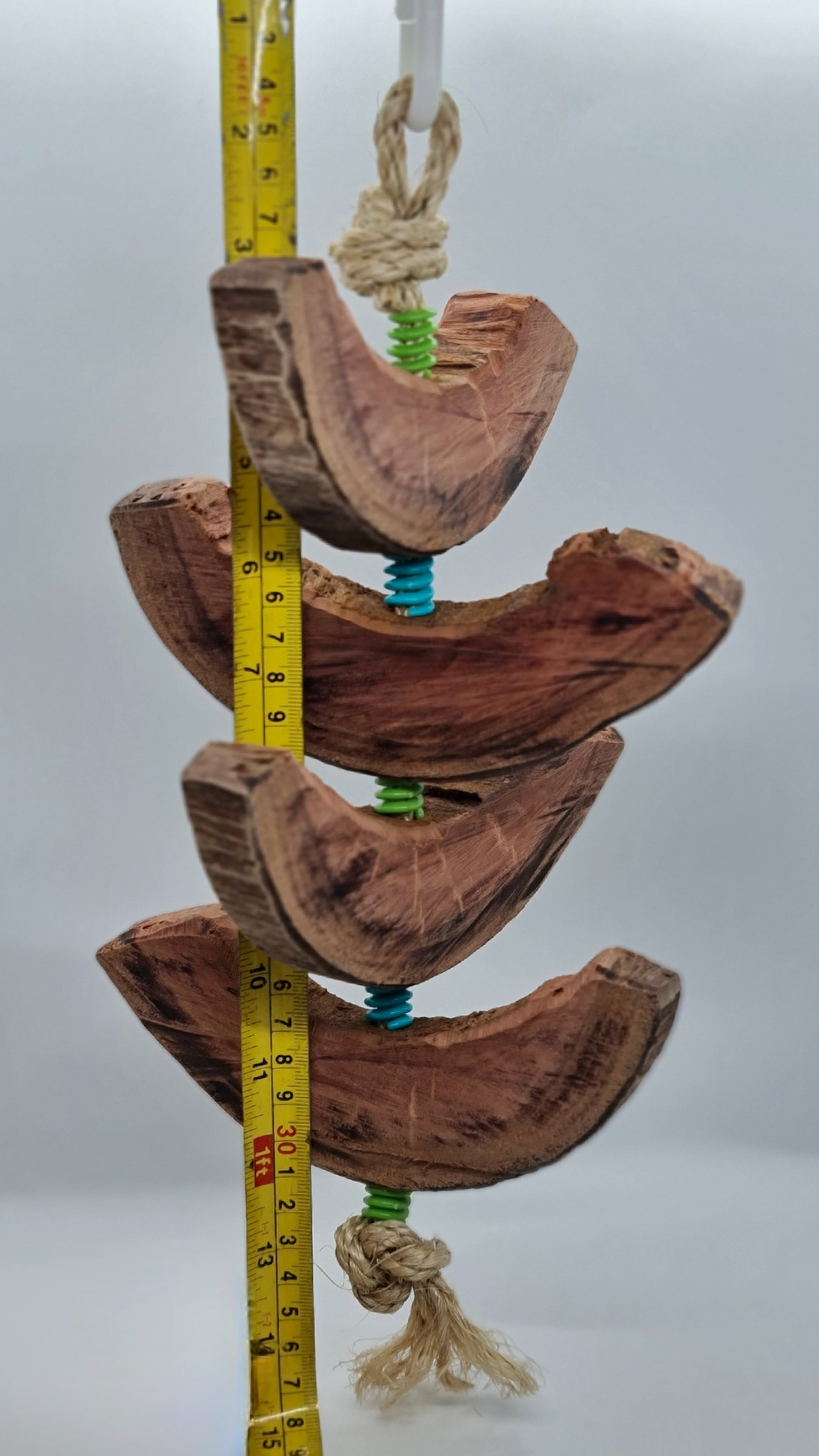 It's a really good practice to always inspect your birdies toys for any destruction they may have incurred upon their toy and if they've dirtied it to always wash them in warm soapy water so your birdie has nice clean equipment to play with.