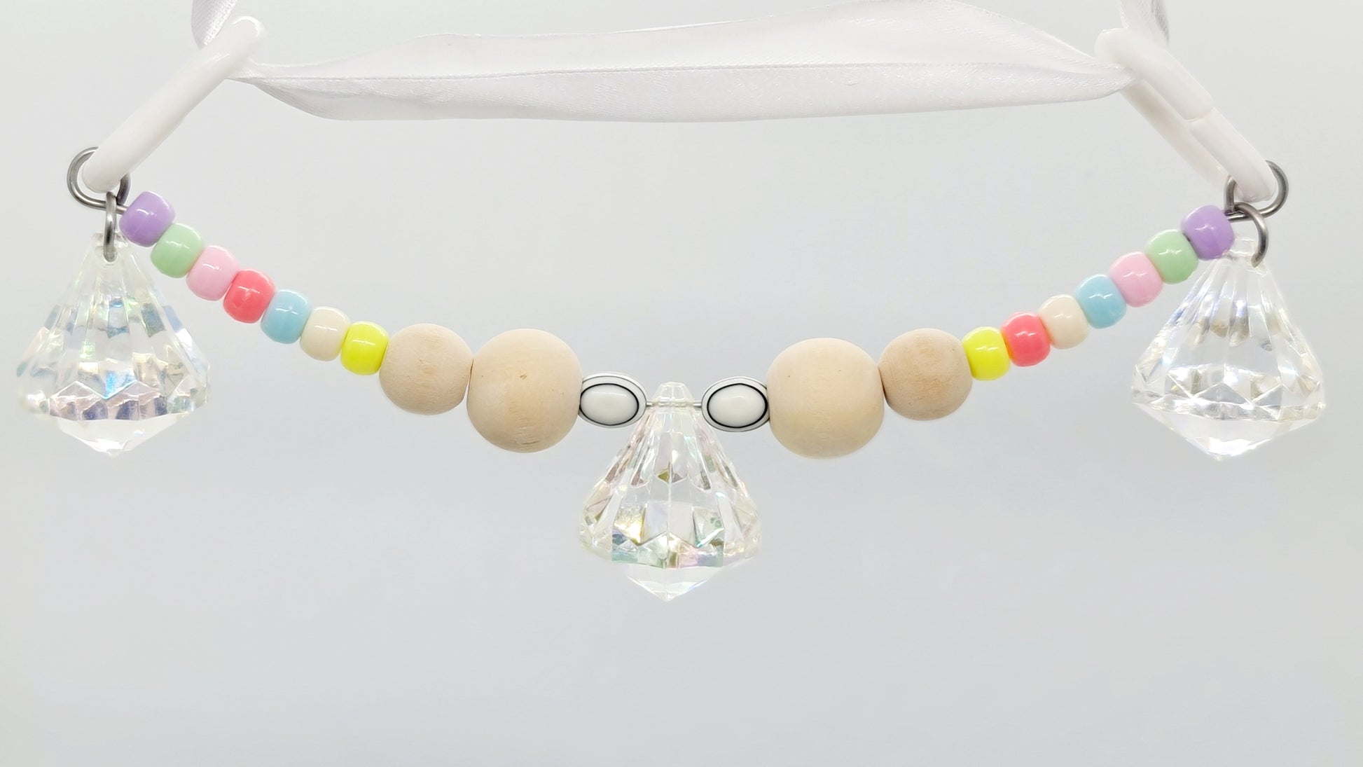 This 'Double Hanger Triple Crystal' toy makes for a pretty fun accessory for your birdies palace with it's double hanger style. Hand made using acrylic beads, wooden beads and stainless steel wire and a plastic clip as the hanger. The overall measurement from hanger clip to hanger clip is approximately 19cm long.🦜🐦 Suits very small to medium birdies.