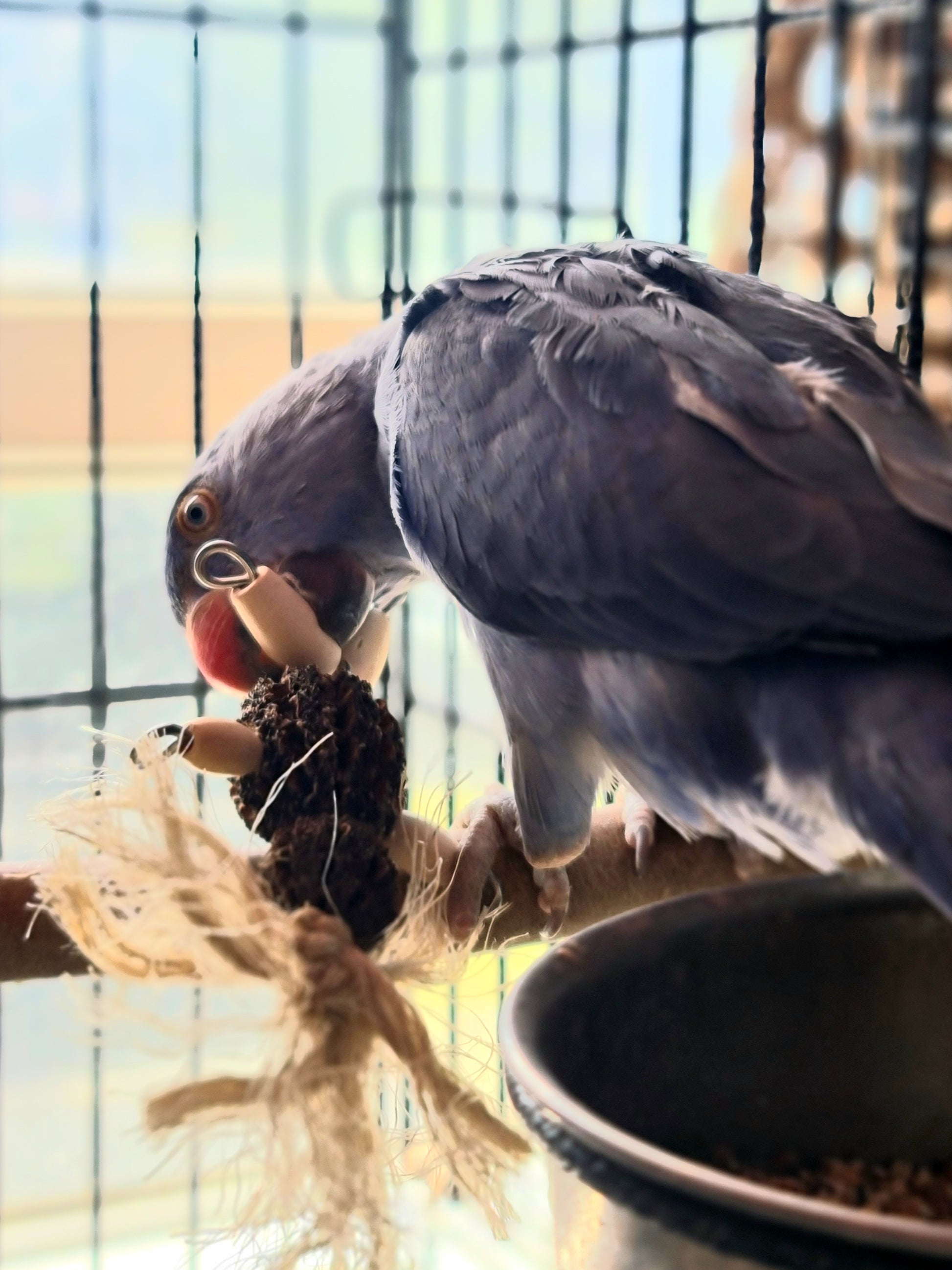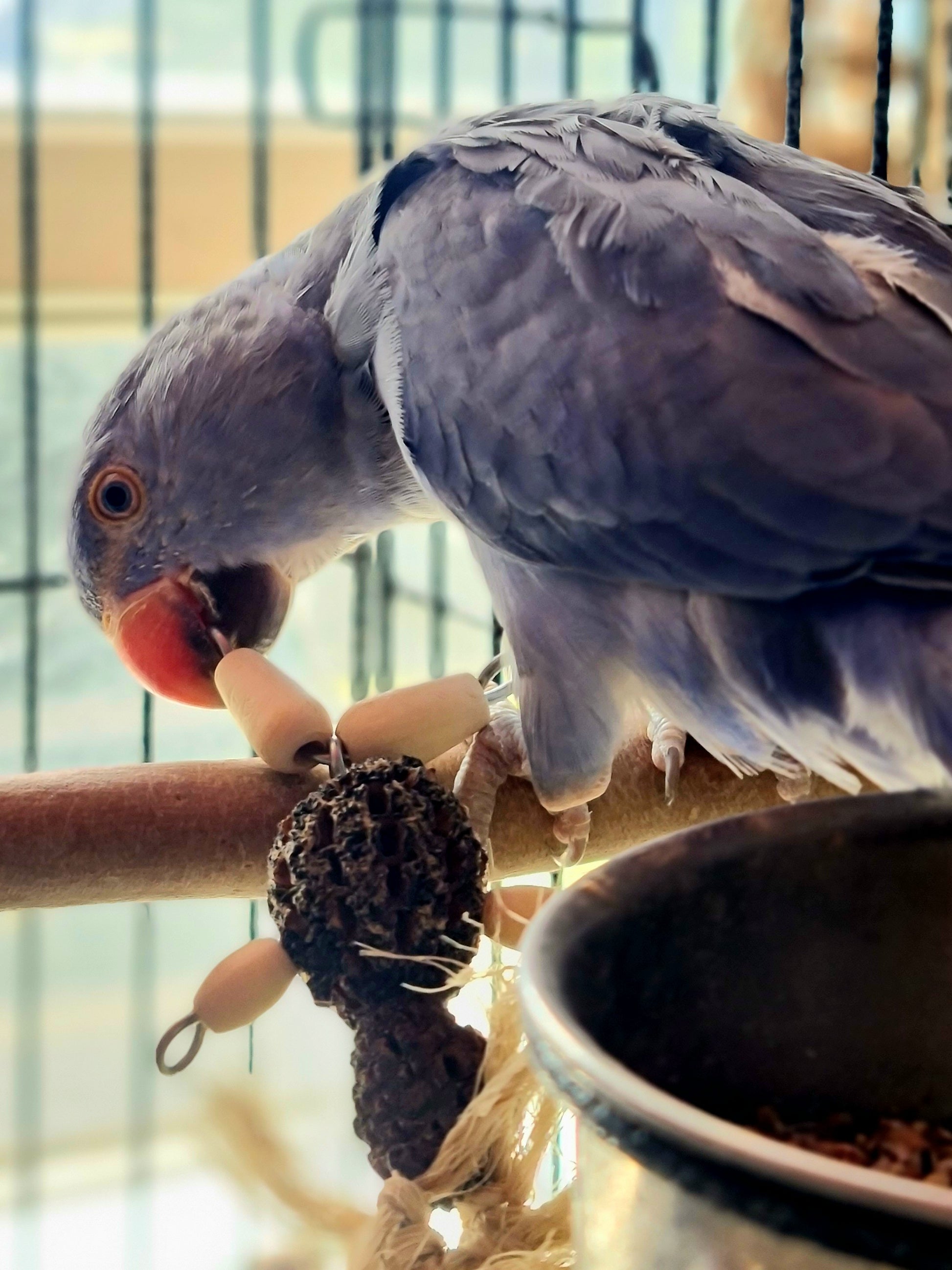 It's a really good practice to always inspect your birdies toys for any destruction they may have incurred upon their toy and if they've dirtied it to always wash them in warm soapy water so your birdie has nice clean equipment to play with.