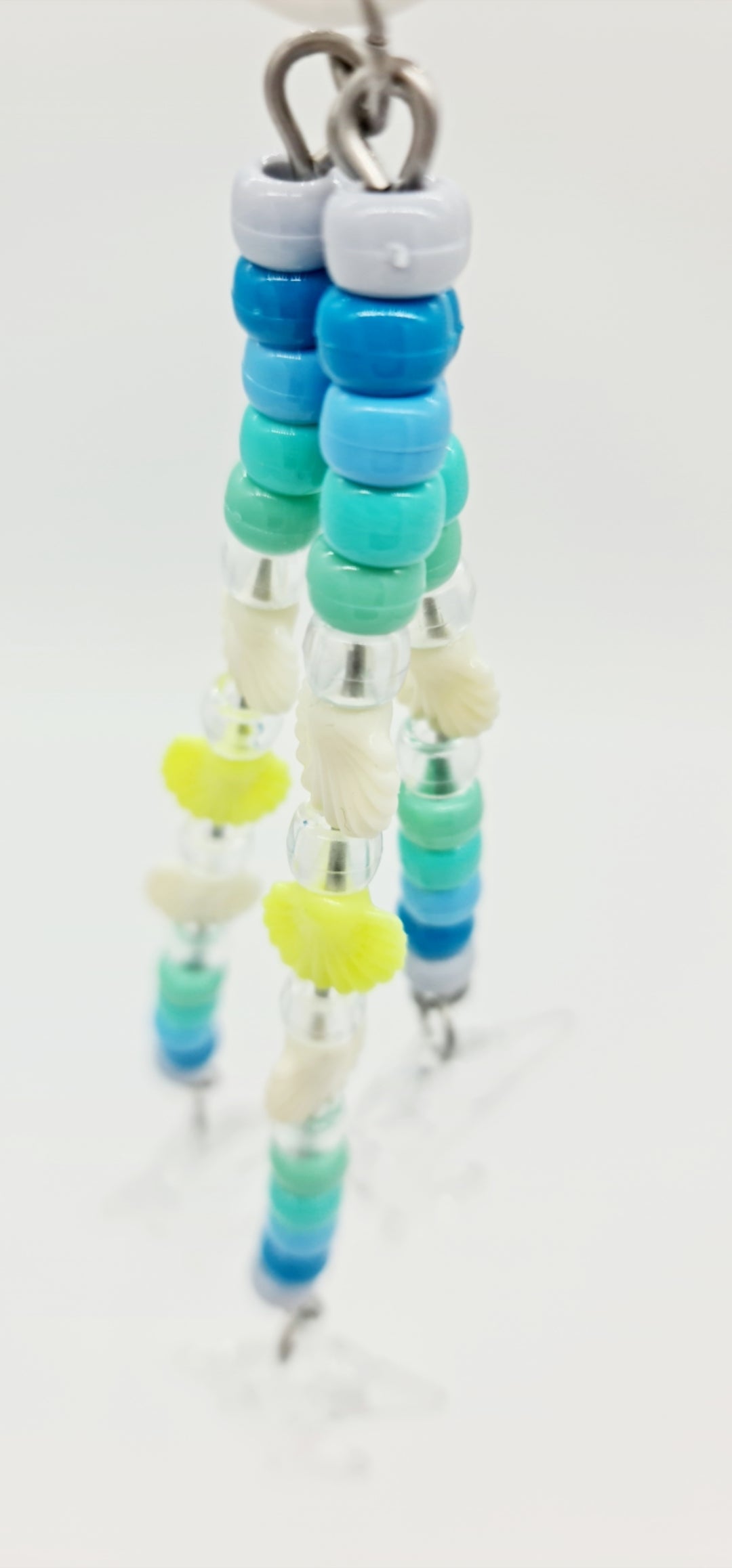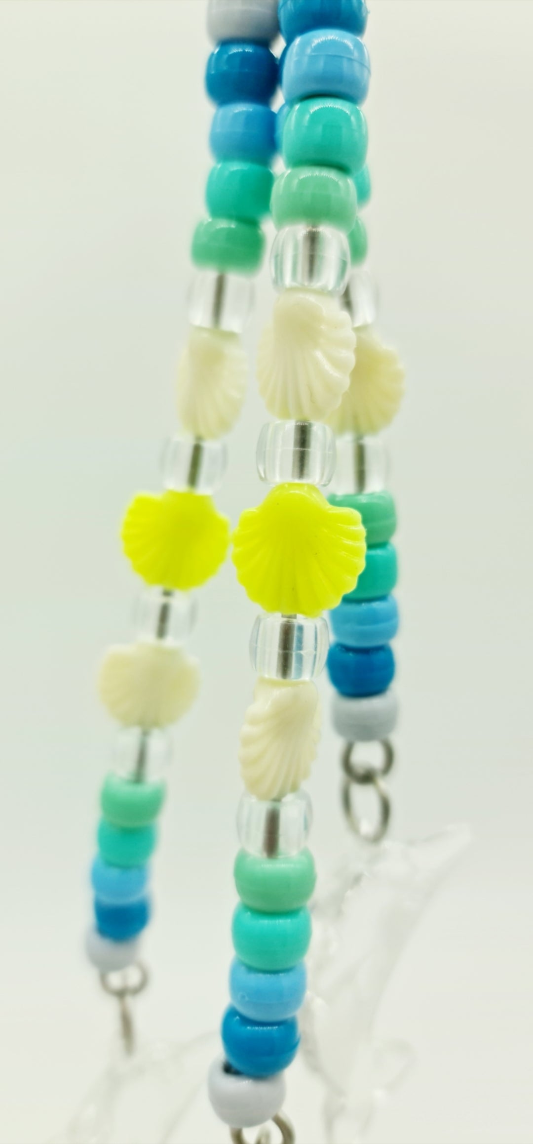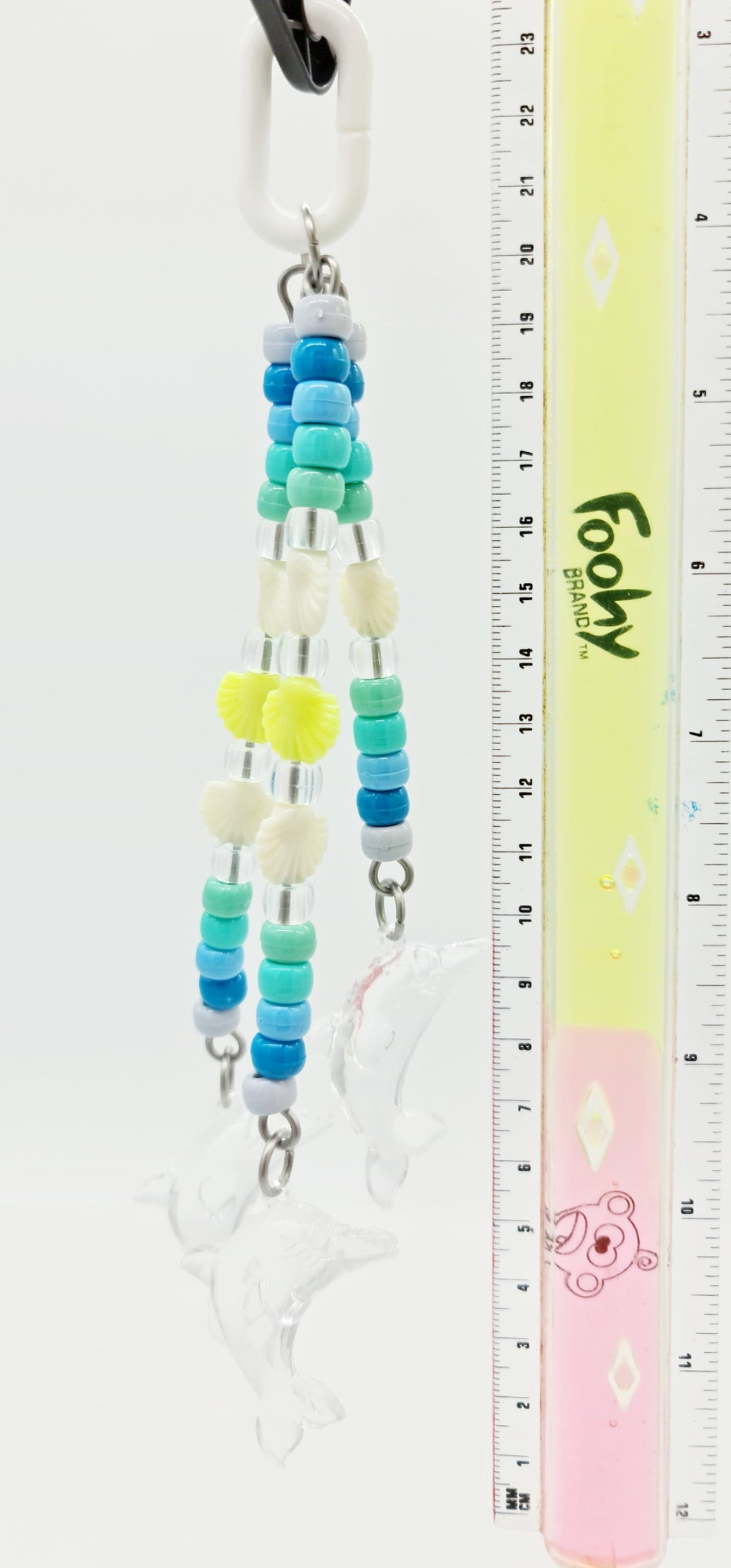 This 'Oceanside Dolphins' toy is a very cute option for you to decorate your birdies palace with a beachie theme, matching with also the 'Oceanside Shells & Dolphin' toy. Hand made using acrylic beads, stainless steel wire and a plastic clip as the hanger. The overall measurement from hanger clip to the acrylic crystal bottom is approximately 23cm long. 🦜🐦 Suits very small to medium birdies.