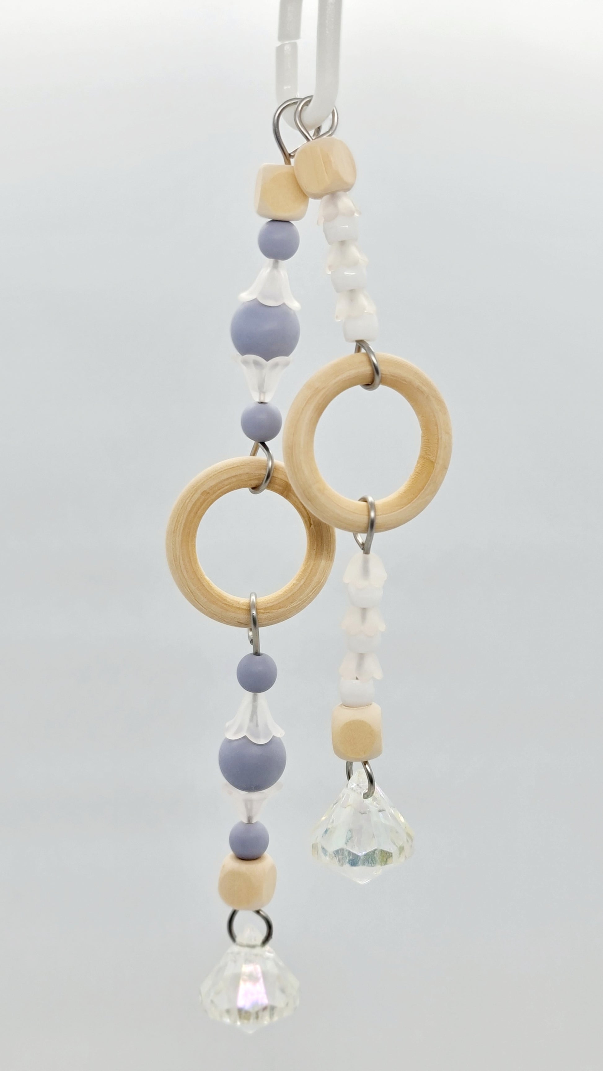 A very pretty piece to add to your birdies palace, this ombre grey and white double strand toy is hand made using acrylic beads, pine wood beads and stainless steel wire. The overall measurement from hanger clip to the base of the acrylic hearts is approximately 25cm long. 🦜🐦 Suitable for very small, small and medium birds.