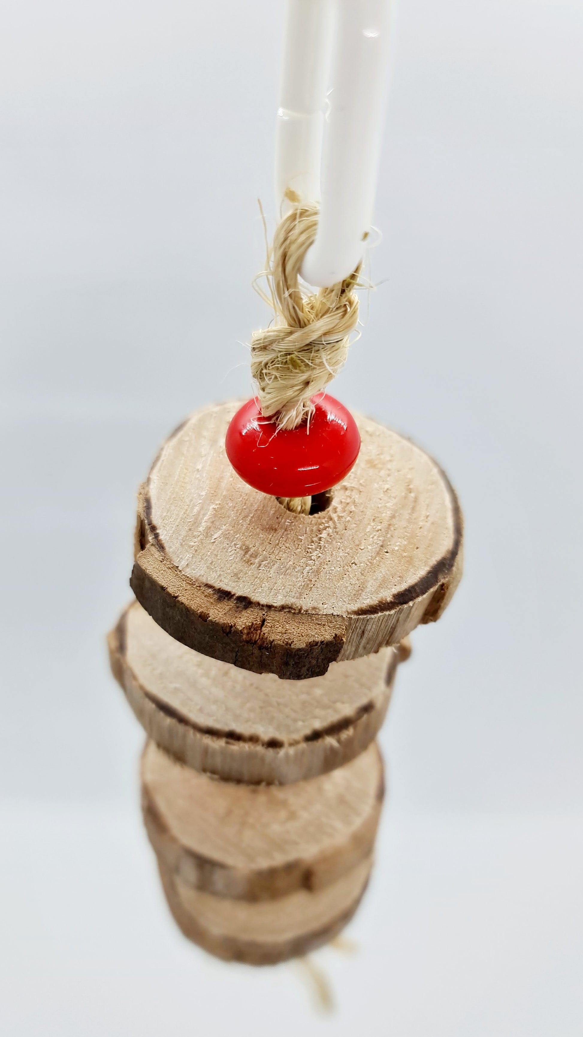 A fun shredder the pancake sliced timber red and purple smarties toy has been created using pancake cut style slices of timber from our spotted gum trees and threaded onto sisal rope. Hand made using timber, acrylic beads, sisal rope and a plastic clip as the hanger. The overall measurement from hanger clip to the sisal rope base is approximately 23cm long. 🦜🐦 Suits small and medium birdies 🤩 Please note that your timber toy may start splitting/cracking/shrinking in areas as it continues to dry out since it has been freshly harvested from our forest, however this should not affect your birdies play time and fun with this toy 😁