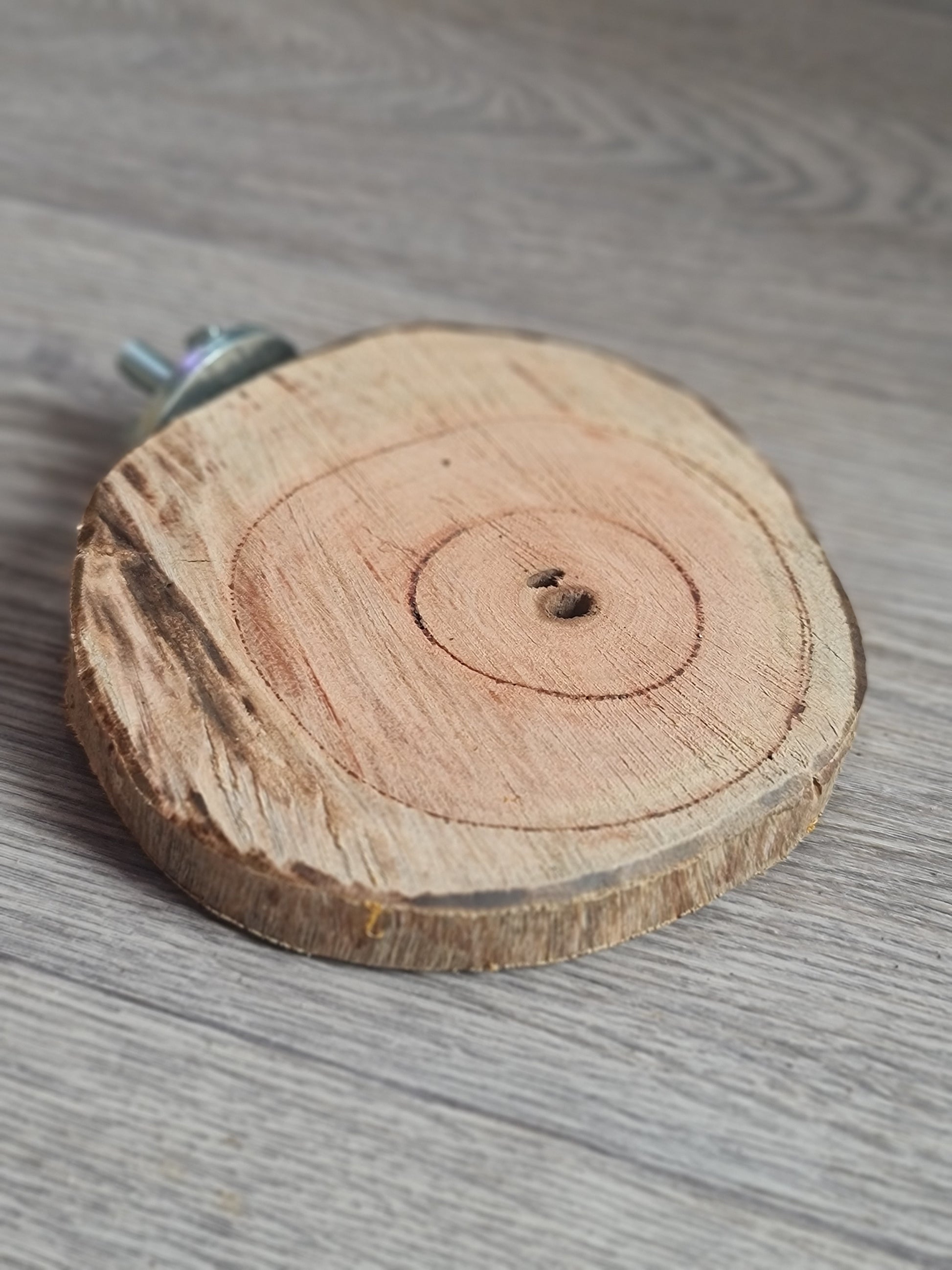 This comfy timber platform is great for those birdies that love somewhere to chill and maybe even have a sleep on 🥰 Platform measures approximately 14cm diameter x 2cm/2.5cm thick. Made from our gum tree timber, zinc plate bolt, wing nut and 4cm washers. (there may be a variation in timber type, size and colour due to this being a recreatable one, however it's approximate length and style will remain the same ☺️) 🐦🦜 Suitable for very small to medium birds. Please note that your timber toy may start splitting/cracking/shrinking in areas as it continues to dry out since it has been freshly harvested from our forest, however this should not affect your birdies play time and fun with this toy 😁