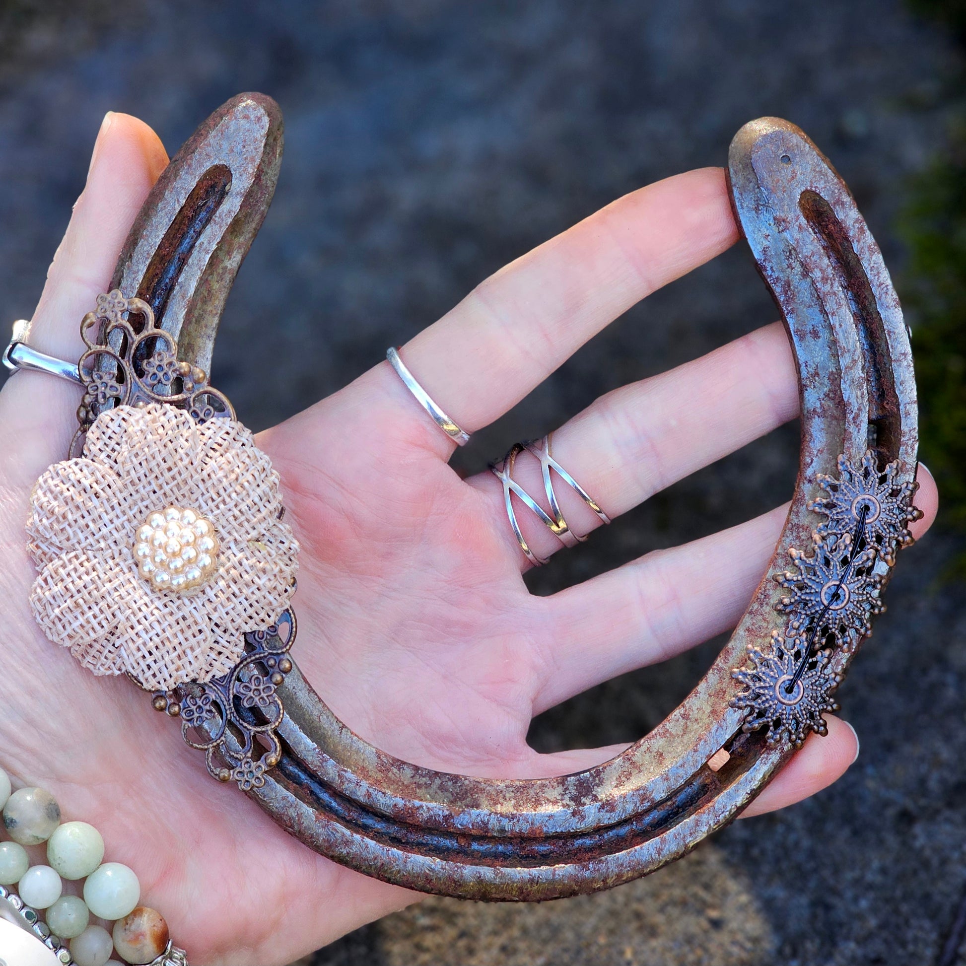 Every element has been thoughtfully selected and hand-assembled to create a piece that radiates love, luck, and artisan spirit, no two horseshoes are ever exactly alike in wear or character, they are uniquely yours 💎