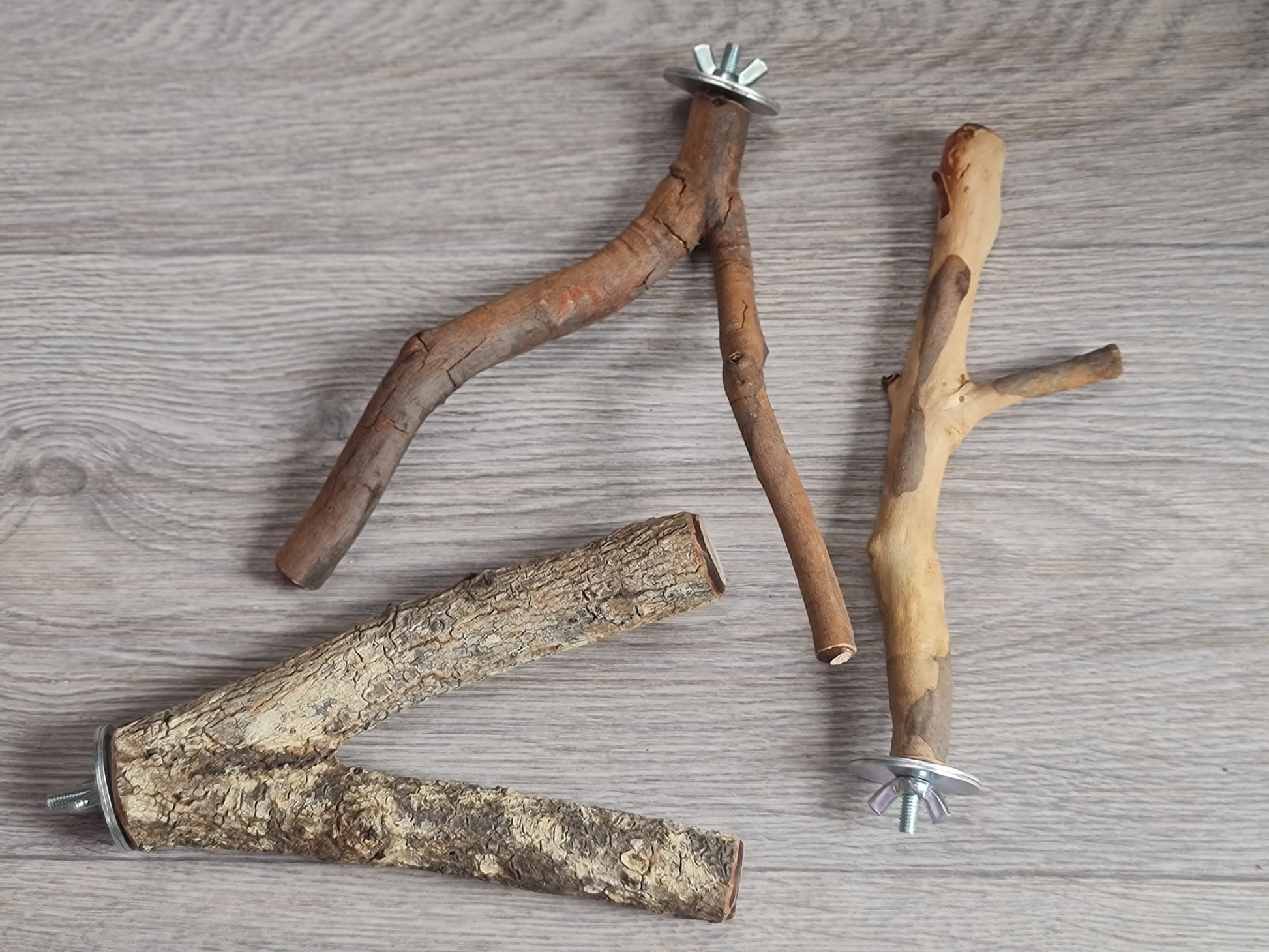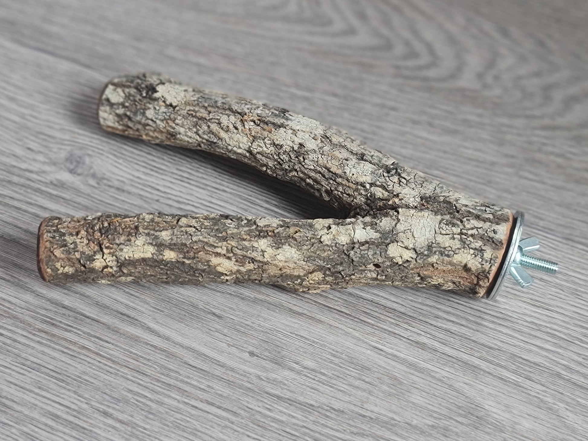 This cute fork perch is great to add to your birdies palace with it's all natural timber and fun fork feature, also perfect for your birdies feet and nails. Made from (depending on which one selected) spotted gum, ironbark or casuarina, zinc plate bolt, wing nut and 4cm washers. Each fork measures approximately 20cm long x 2cm/2.5cm diameter, ironbark 3cm diameter 🐦🦜 Suitable for very small to medium birds (e.g. canaries, finches, budgies, lovebirds, cockatiels, quakers, conures, ringnecks, caiques etc). Please note: I recommend when installing your birdies new perch that you install it with the hardware hanging externally where your feathered friend cannot play with it 🪶