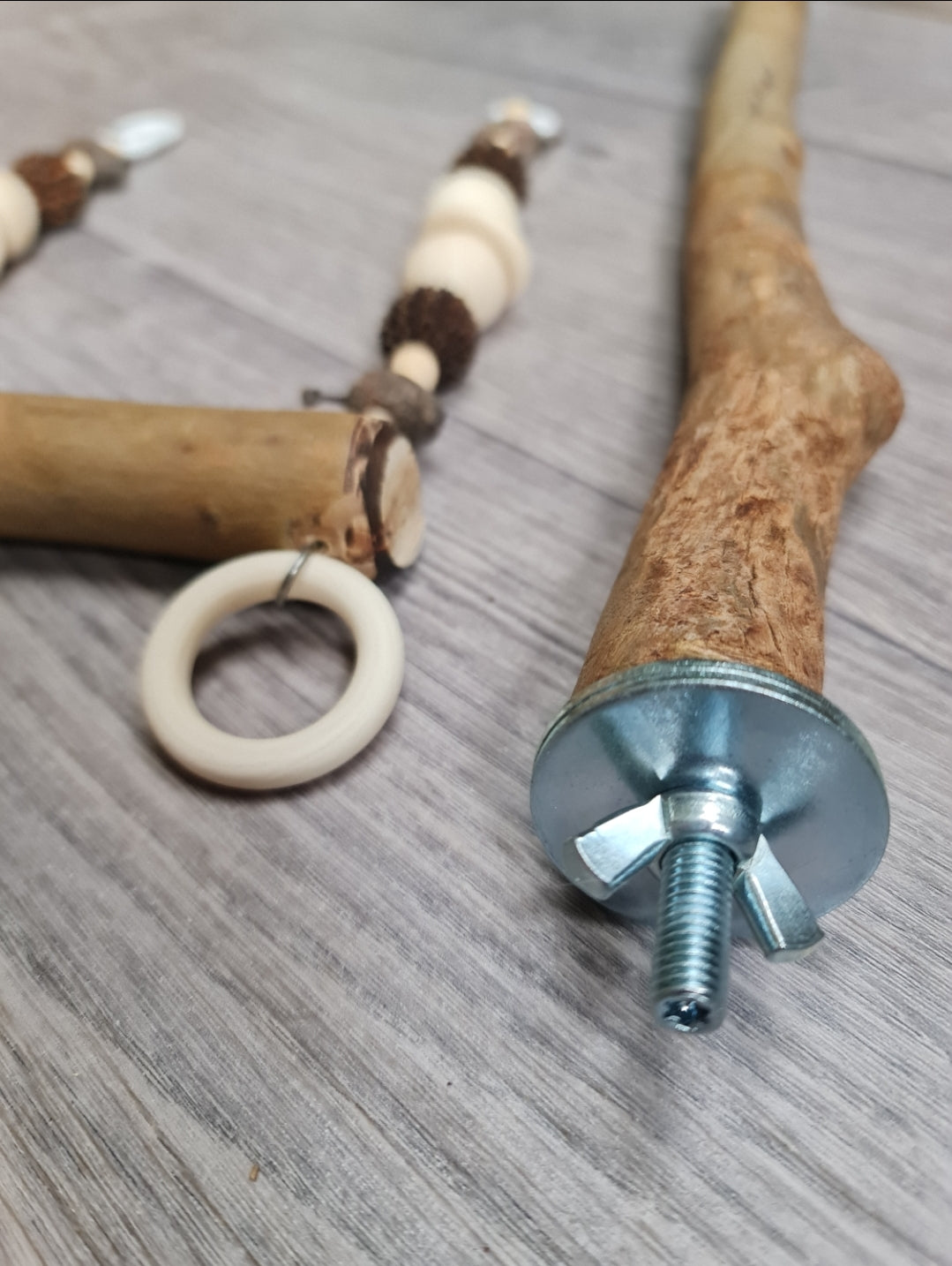 Spotted Gum Single 45cm x 2.5cm Bolt On Perch & Swing Set