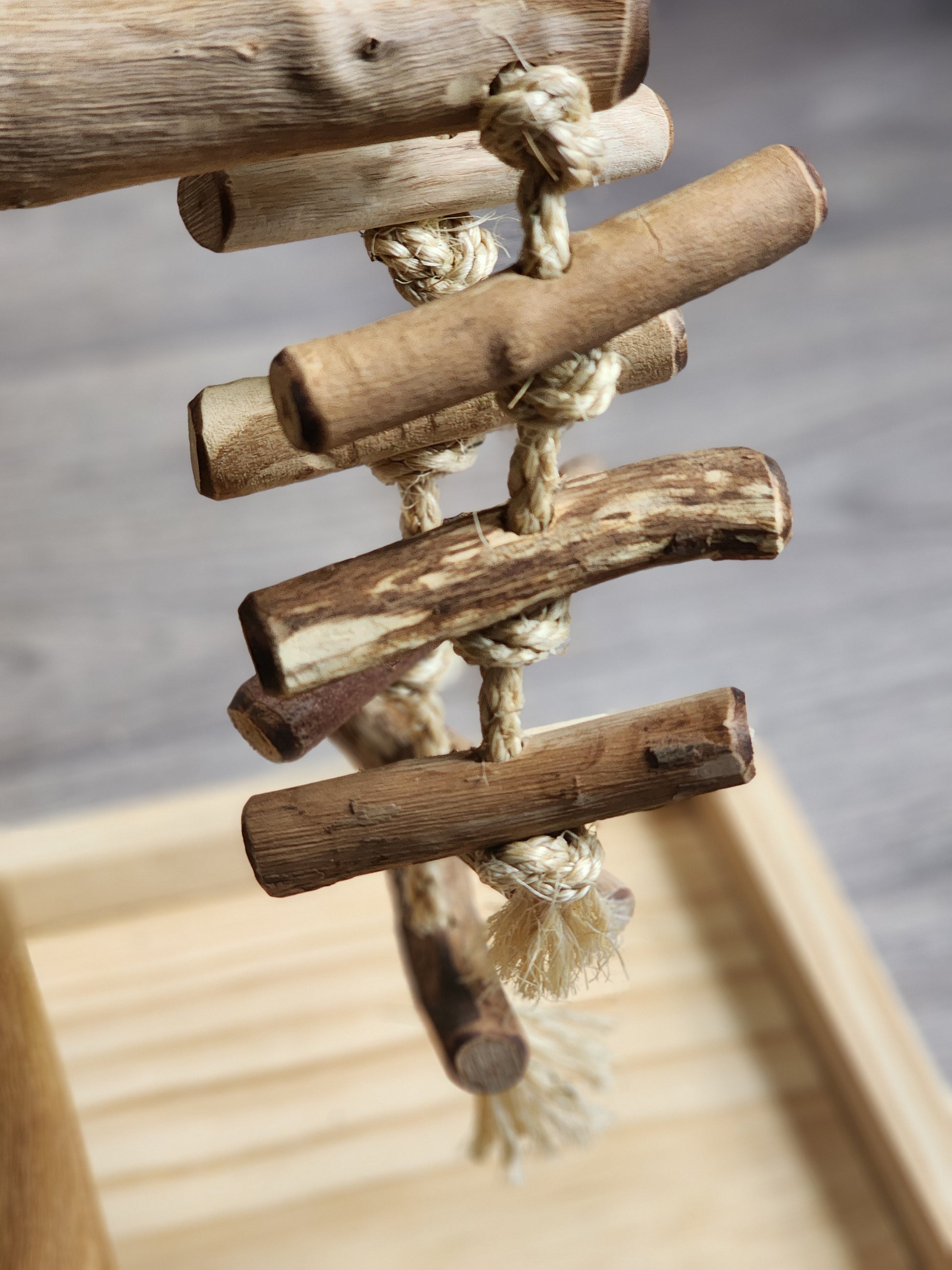 This solid T stand weighing in at kg is perfect for training your birdie, comes with a fun sisal rope beaded toy and a small stainless steel treat bowl and lid so you can fill it with your birdies favourite goodies. Hand made from spotted gum(T perch), visible screws stainless steel, pine wood base, stainless steel bowl, sisal rope and acrylic beads. Measures approximately cm tall (cm with the bowl), perch length cm with a diameter of cm and the pine timber base measures approximately cm x cm. Stainless steel treat bowl measures approximately 7.5cm wide x 6cm deep 🐦🦜 Suitable for small to large birds (e.g. budgies, lovebirds, cockatiels, quakers, conures, ringnecks, caiques, eclectus, galahs, corellas, alexanderine, amazons, african greys and small macaws).