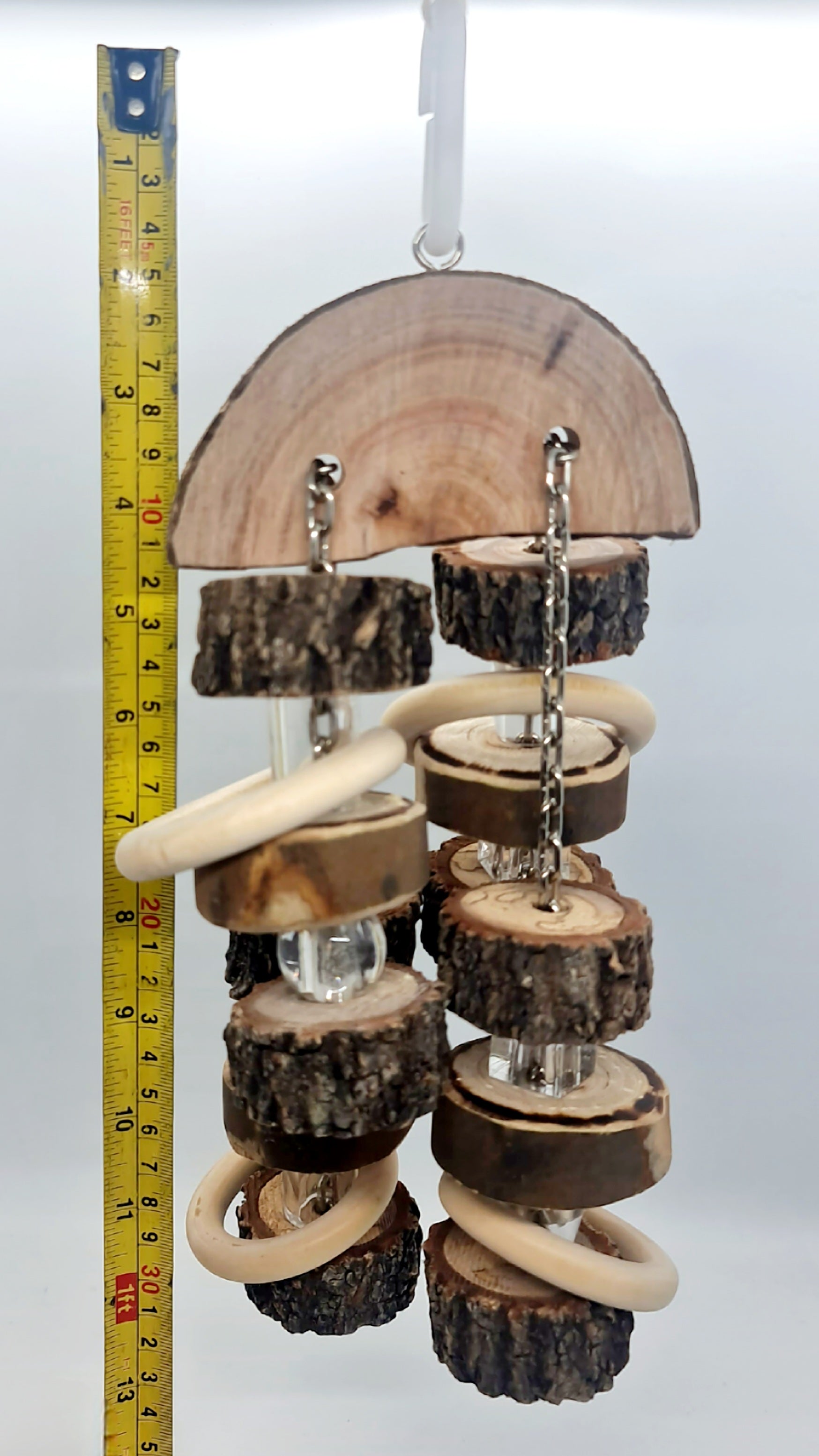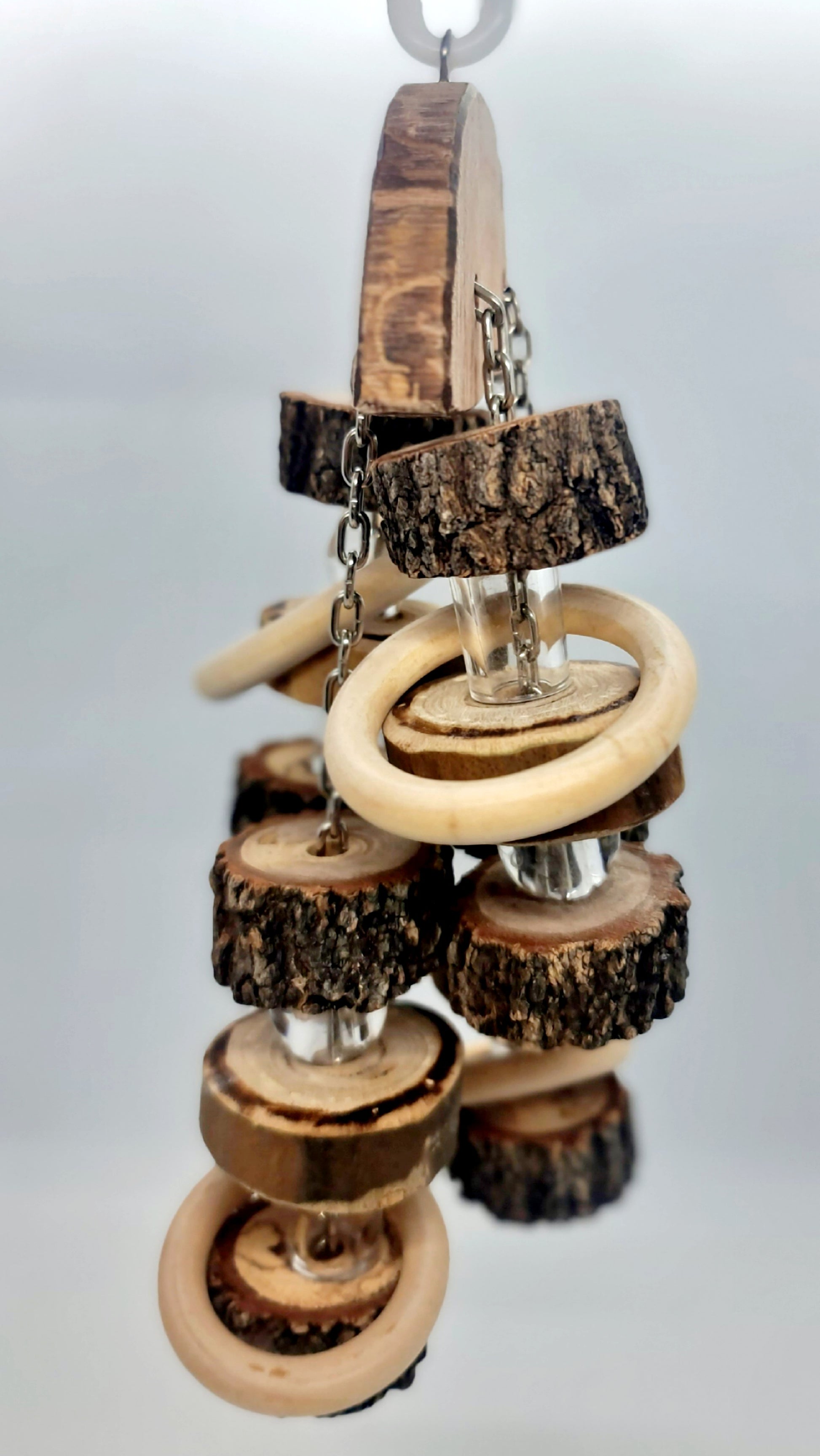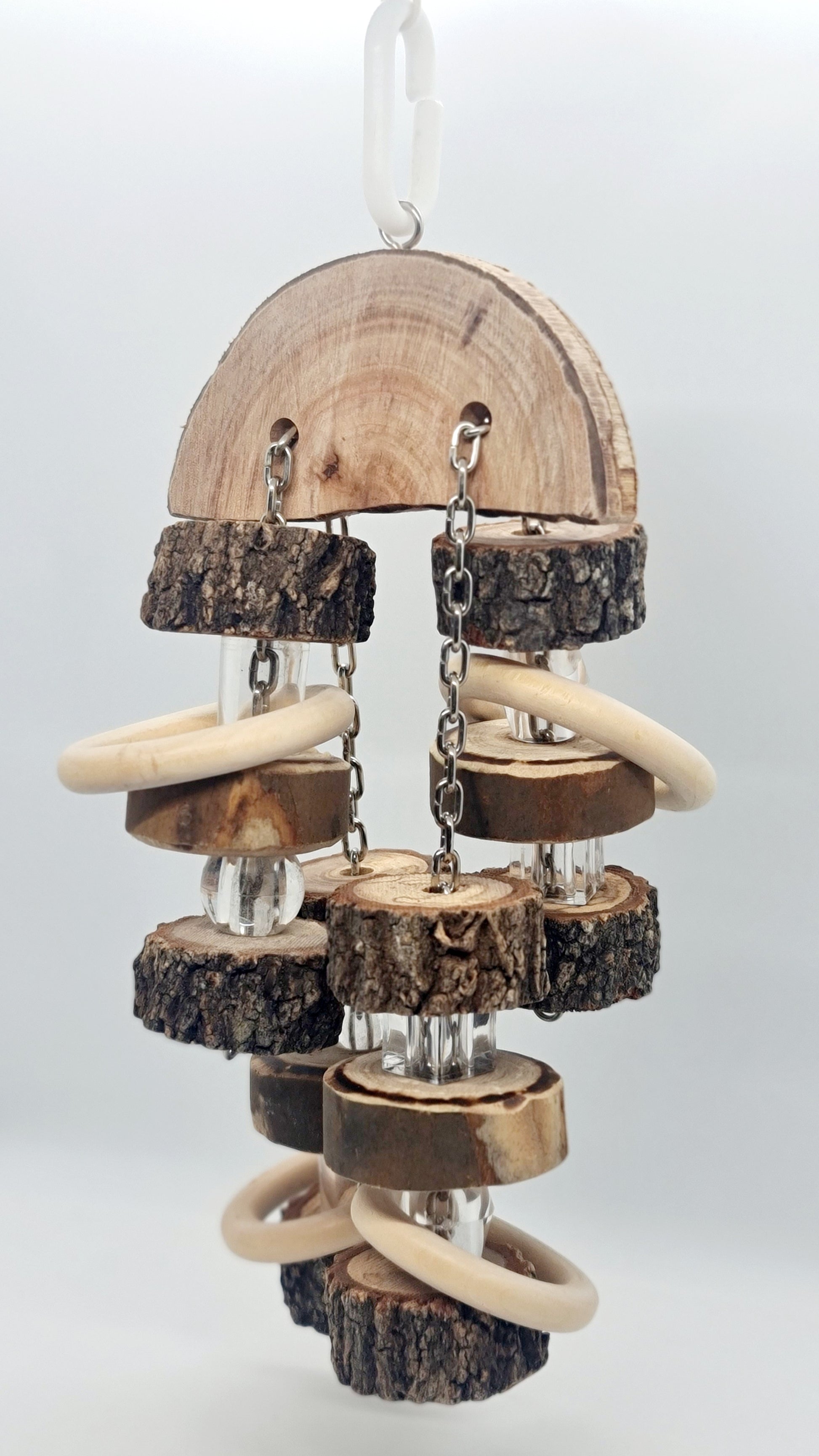 A super fun moveable parts toy, the timber delight moving shredder would make a fantastic addition to your birdies palace with plenty of elements for your birdie to be occupied with. Hand made from acrylic beads, timber sourced from our forest (spotted gum and ironbark), pine timber rings and nickel plate chain. Measures approximately 30cm long (from hanger clip to base of toy).🐦🦜Suitable for small, medium and large birds.