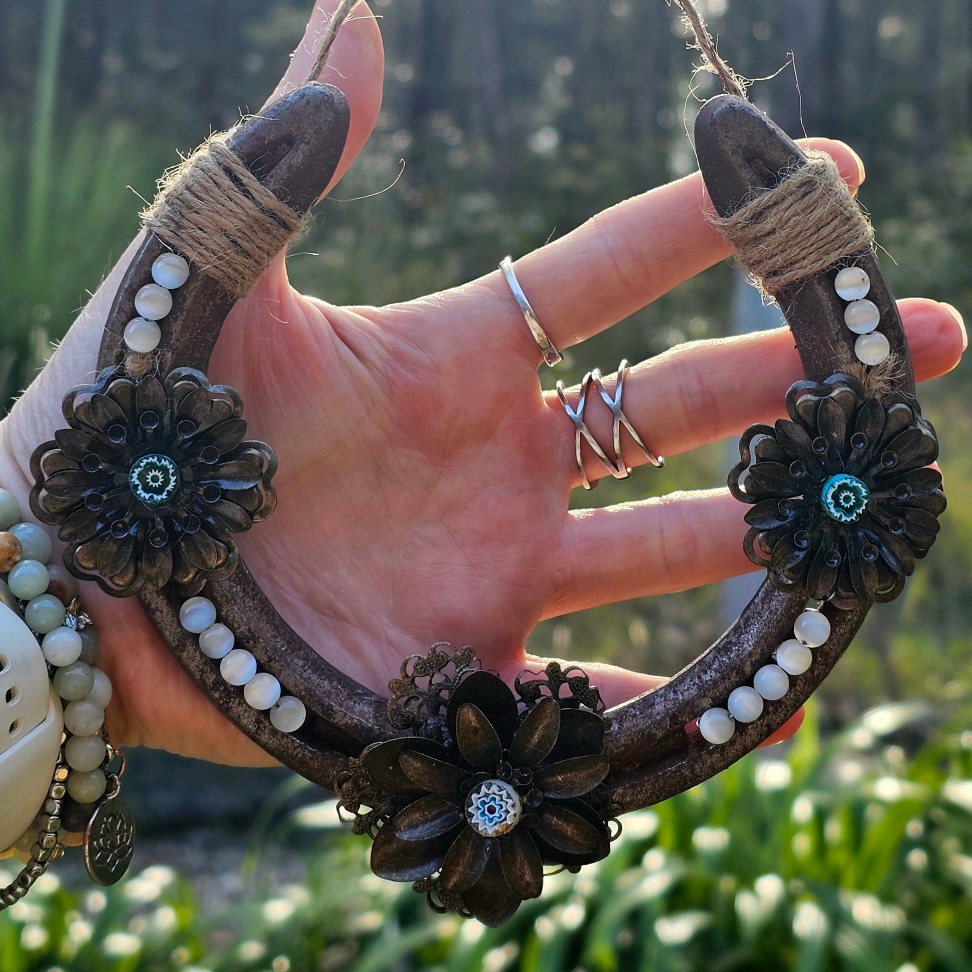 Every element has been thoughtfully selected and hand-assembled to create a piece that radiates love, luck, and artisan spirit, no two horseshoes are ever exactly alike in wear or character, they are uniquely yours 💎
